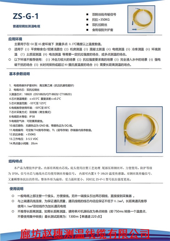 平房仓测温电缆 双钢丝电缆